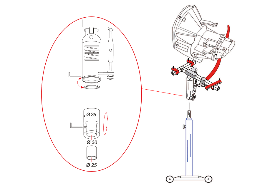 • Entwickelt, um Entfernen und Positionieren des Getriebes von Pkw und leichten Nutzfahrzeugen zu erleichtern.